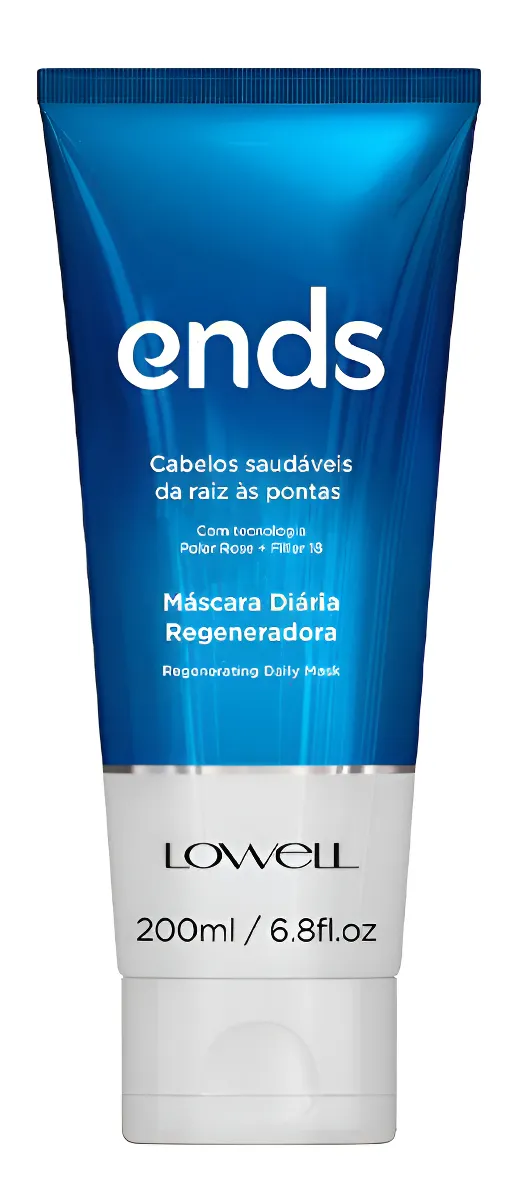 Máscara capilar para cabelos danificados e quebradiços. Lowell Ends Regeneradora hidrata, dá brilho e regenera a fibra capilar, além de ajudar o fio a crescer muito mais forte e saudável.